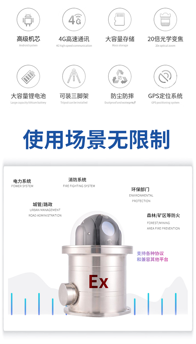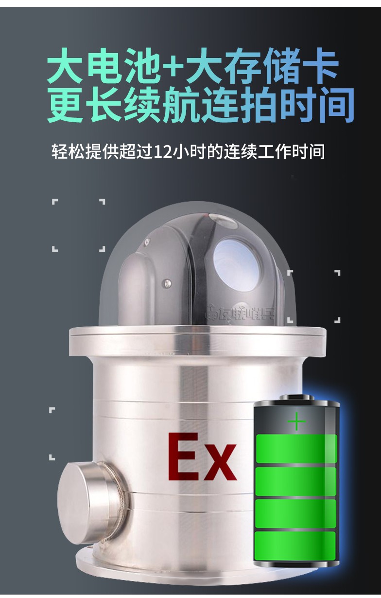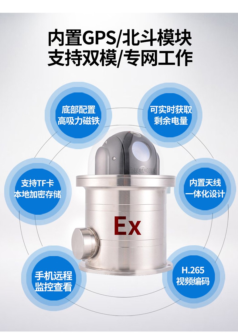 betway88必威手机网页版5G防爆布控球是一款具备防爆功能的5G布控球产品,专为特定行业(如石油、炼化、化工、燃气等危险化学和易燃易爆行业)设计。产品内置高清摄像机及高性能锂电池组,通过5G等无线网络方式回传至控制终端,具备防水防震防爆等特性,携带便捷,可快速安装和收纳,完全满足石油、化工等作业区的移动巡检、无人值守、临时监控、应急指挥的应用需求。
